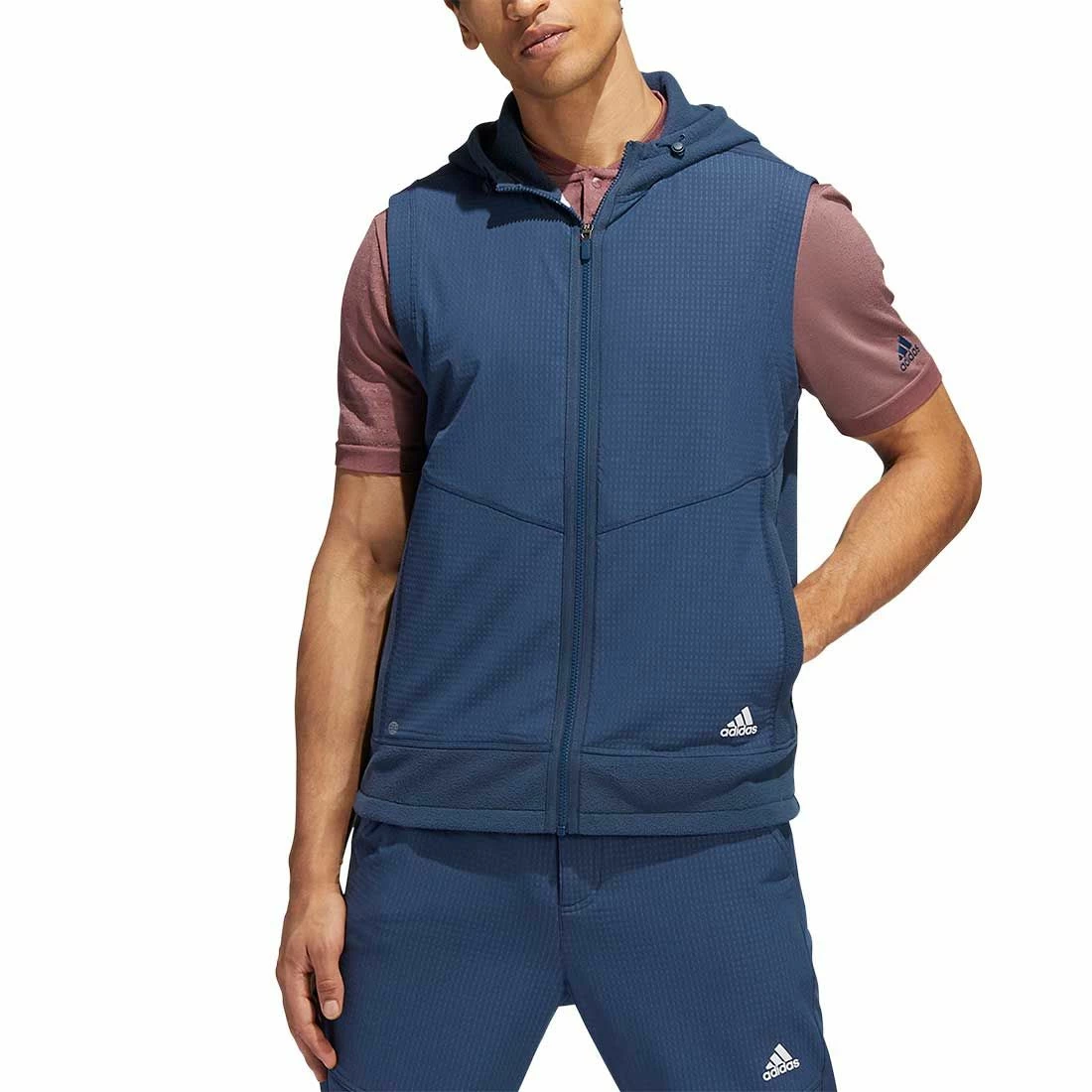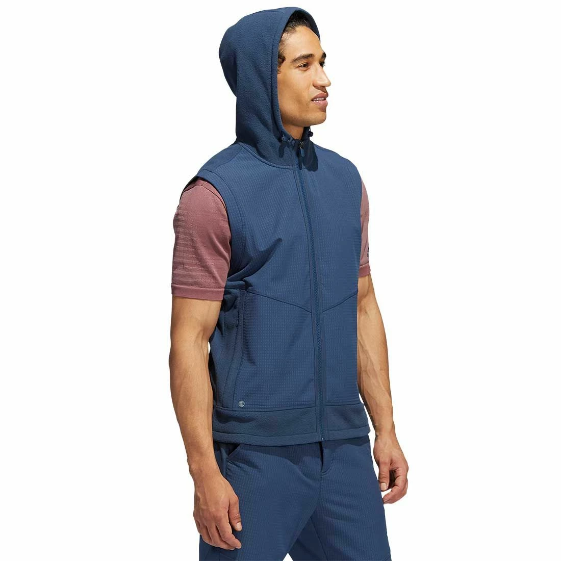 Play through cool weather in this men’s adidas golf vest. The full-zip design with a hood provides a warm layer and allows for unrestricted movement.
