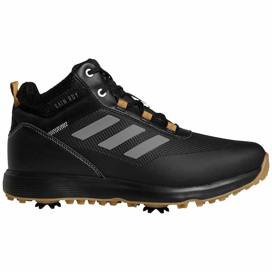 Designed for wet-weather protection, these men’s mid-cut golf shoes offer the waterproof coverage of RAIN.RDY to keep feet dry and you focused on your swing.