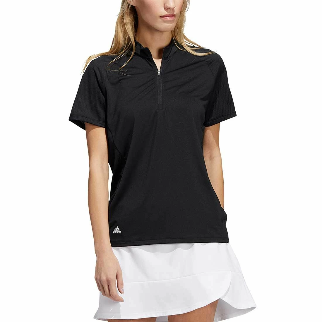 Tee off in sleek style in this women’s adidas golf polo. The stretchy build ensures full range of motion. The quarter-zip design with a stand-up collar gives it a modern look.